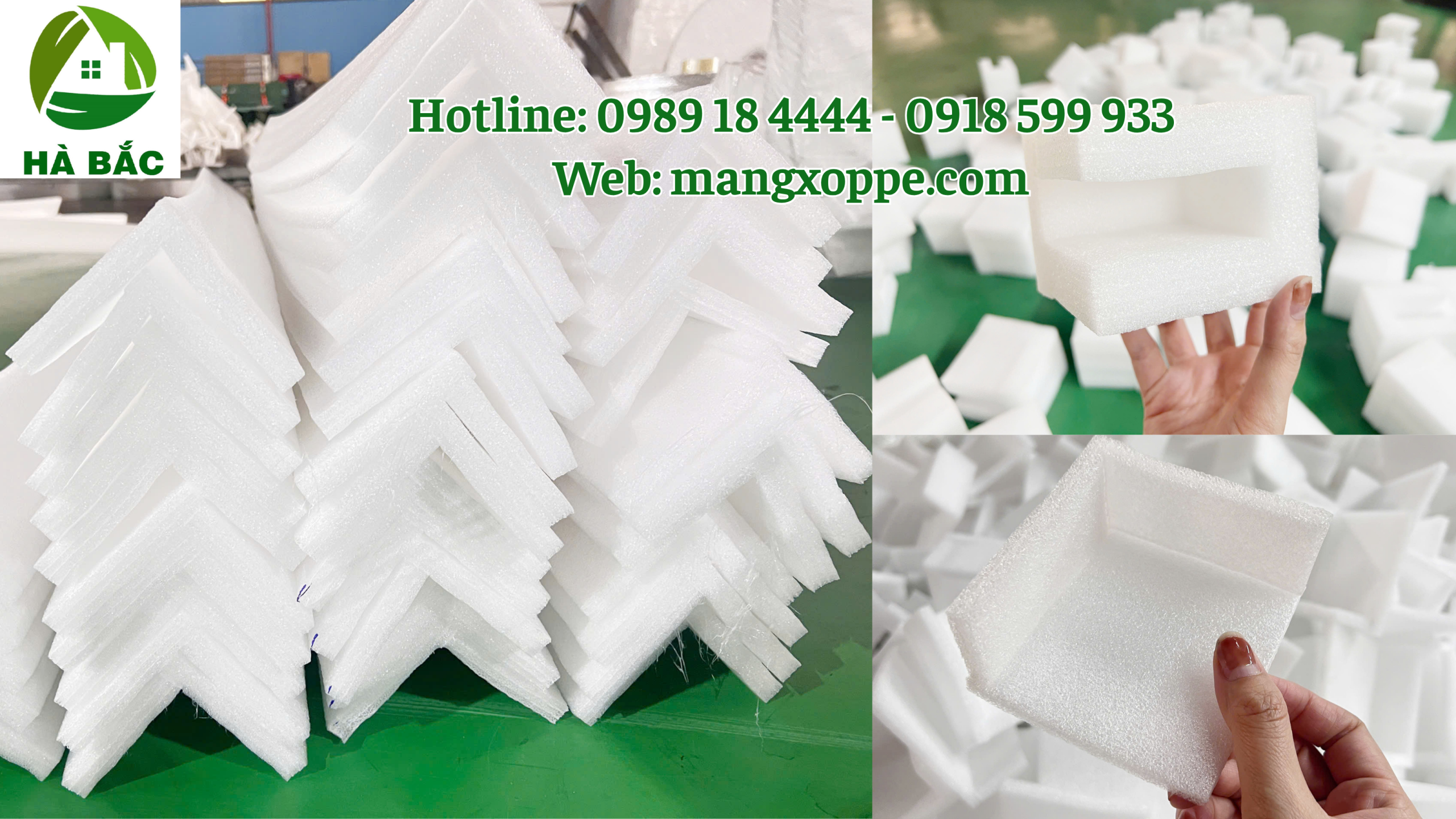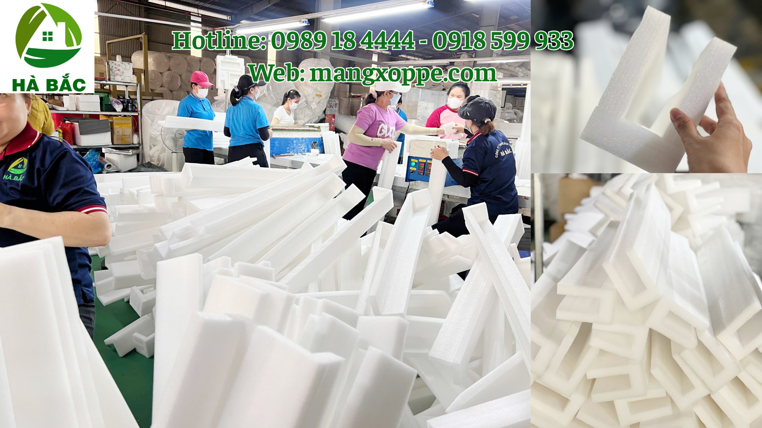 Công ty Hà Bắc là đơn vị chuyên sản xuất mút xốp PE Foam và các sản phẩm gia công như góc xốp, thanh U, ống xốp phục vụ đóng gói hàng hóa, đặc biệt trong ngành đồ gỗ xuất khẩu.