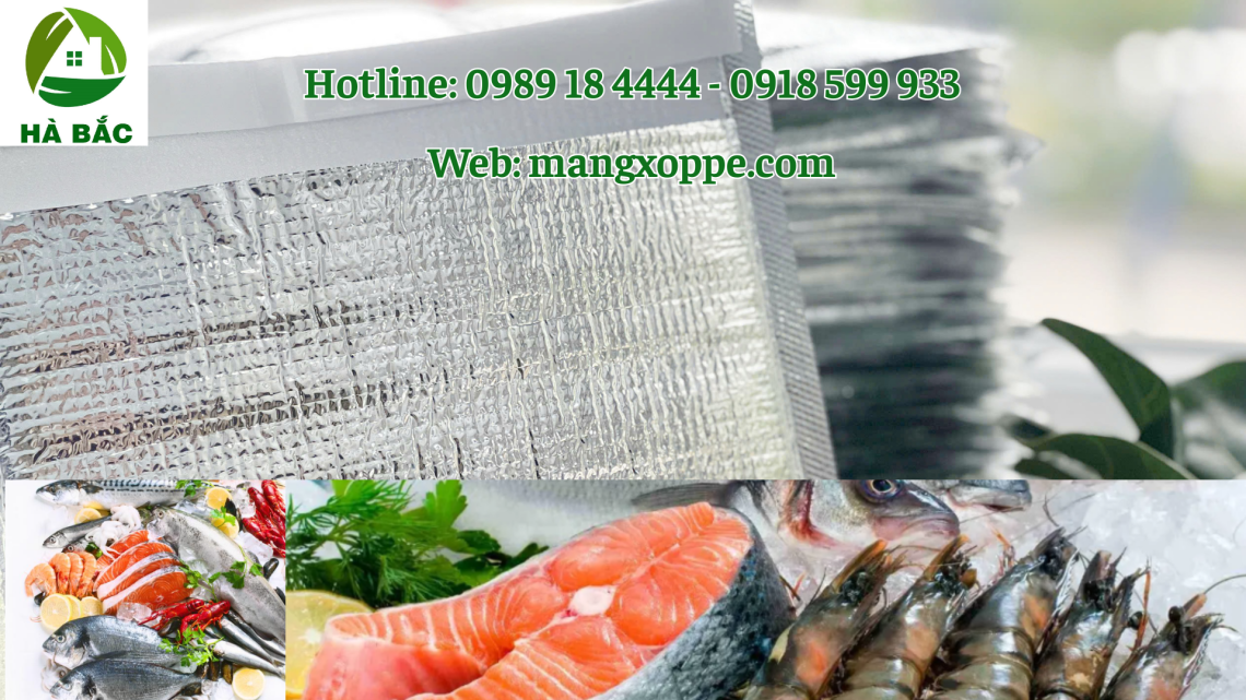 Sản phẩm túi xốp bạc Hà Bắc được cấu tạo từ lớp bạc phản xạ nhiệt kết hợp mút xốp PE Foam, giúp giữ nhiệt ổn định, chống sốc nhiệt và bảo vệ chất lượng sản phẩm trong quá trình vận chuyển.